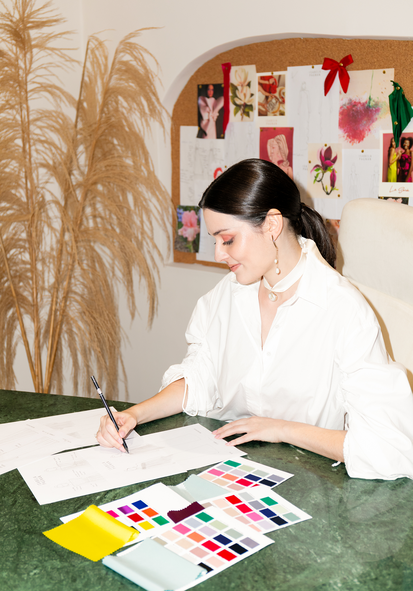 Plissados, drapeados, babados, flores, laços, tons suaves, tons vibrantes: cultivamos técnicas, tecidos e cores que surpreendem e protagonizam memórias.